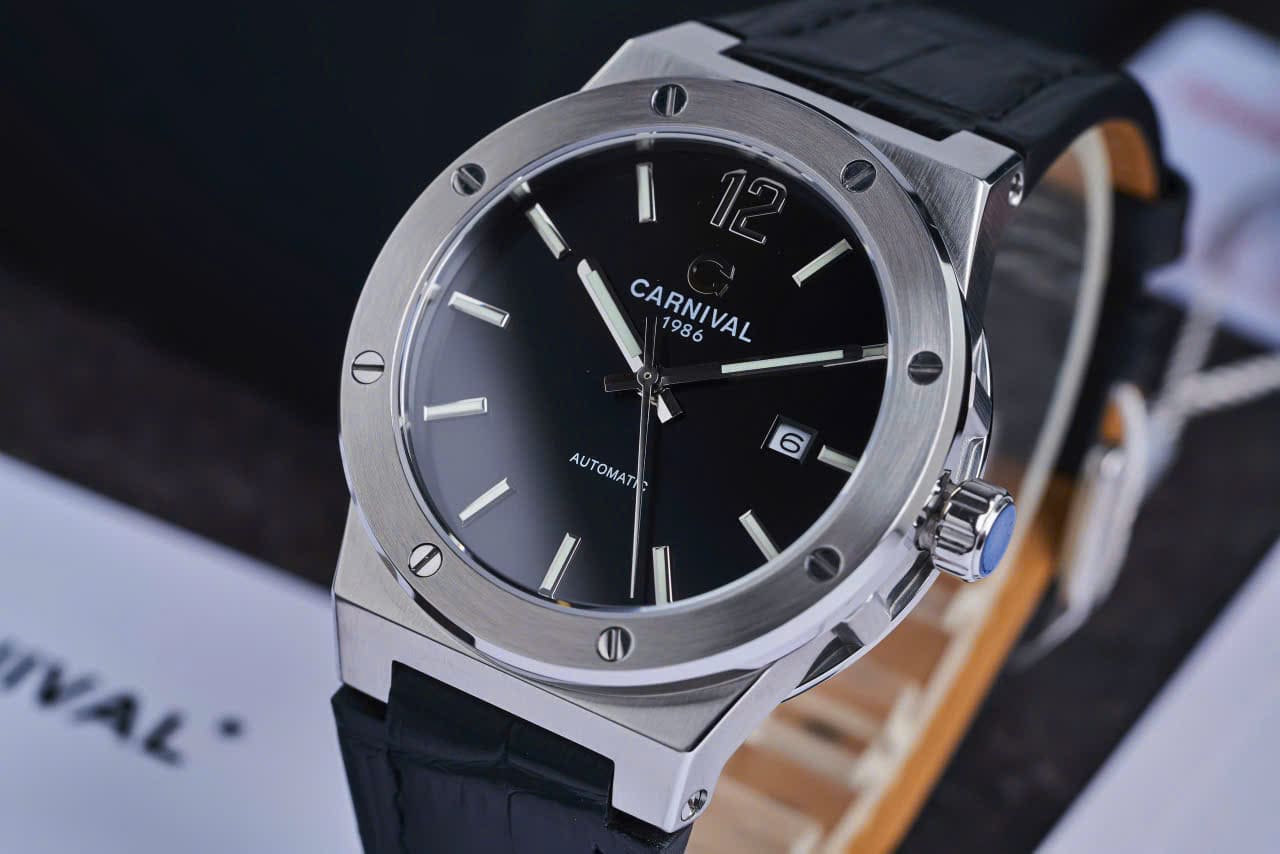 Vành bezel được vát theo hình bát giác, được đính thêm những đinh vít 8 cạnh, các phần cắt góc toát lê vẻ mạnh mẽ, nam tính, ấn tượng.