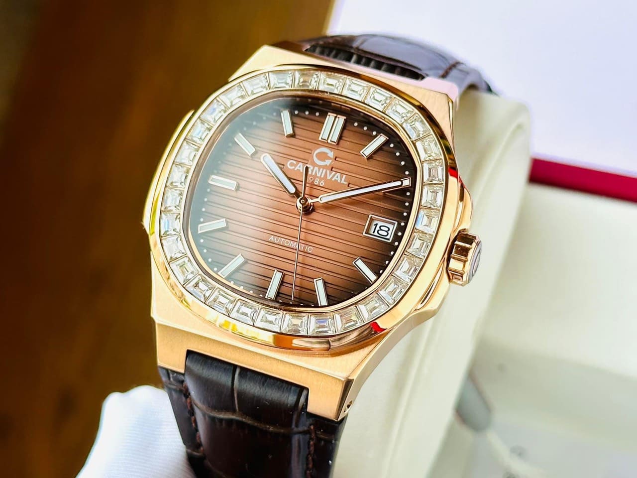 Sản phẩm Carnival Nautilus 8108G màu cafe cực sang, thiết kế viền đính đá cực chất mới ra mắt!