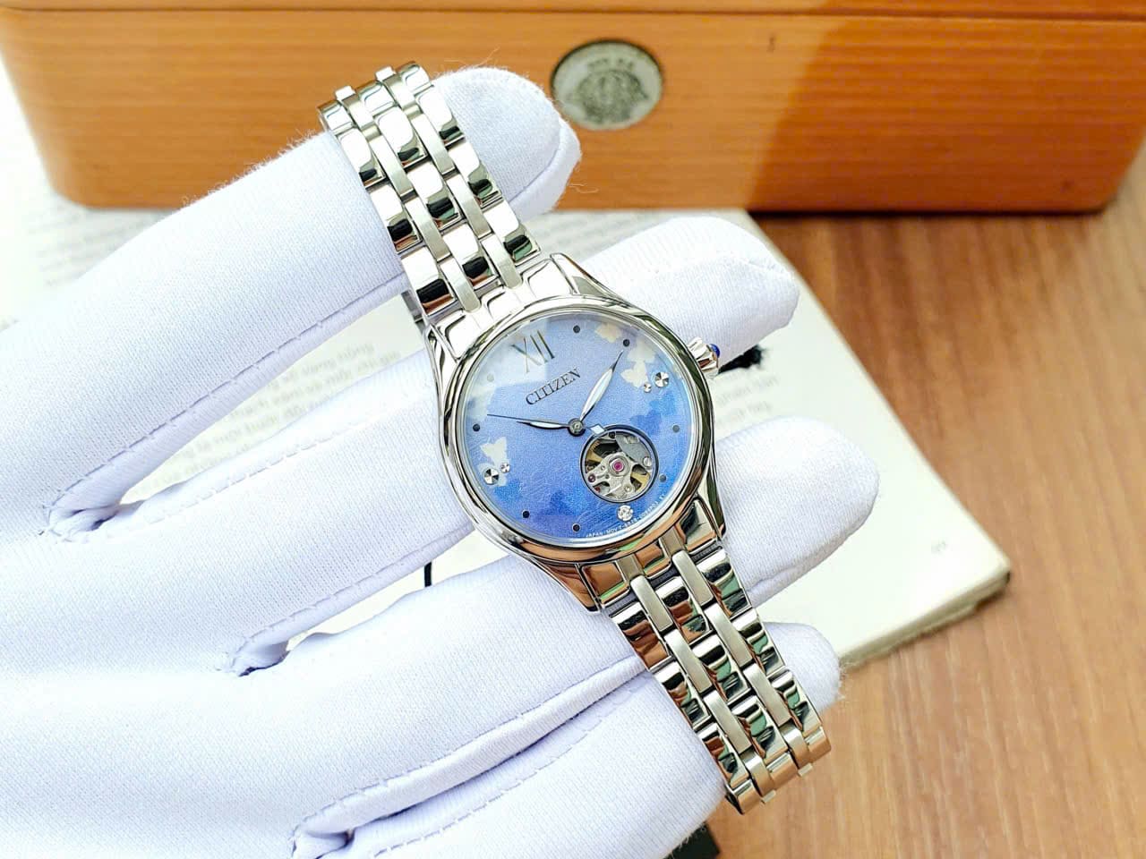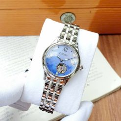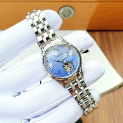 Thiết kế mặt số xanh, kèm họa tiết cơ lộ độc đáo. Bề mặt kính được phủ lớp kính sapphire chống trầy, dây thép không gỉ. Tạo nên phong cách sang trọng cho người đeo.