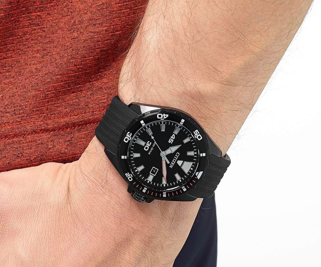 Thiết kế hầm hố, khá ấn tượng với dial đen lịch lãm, bộ kim và cọc số lớn có dạ quang …