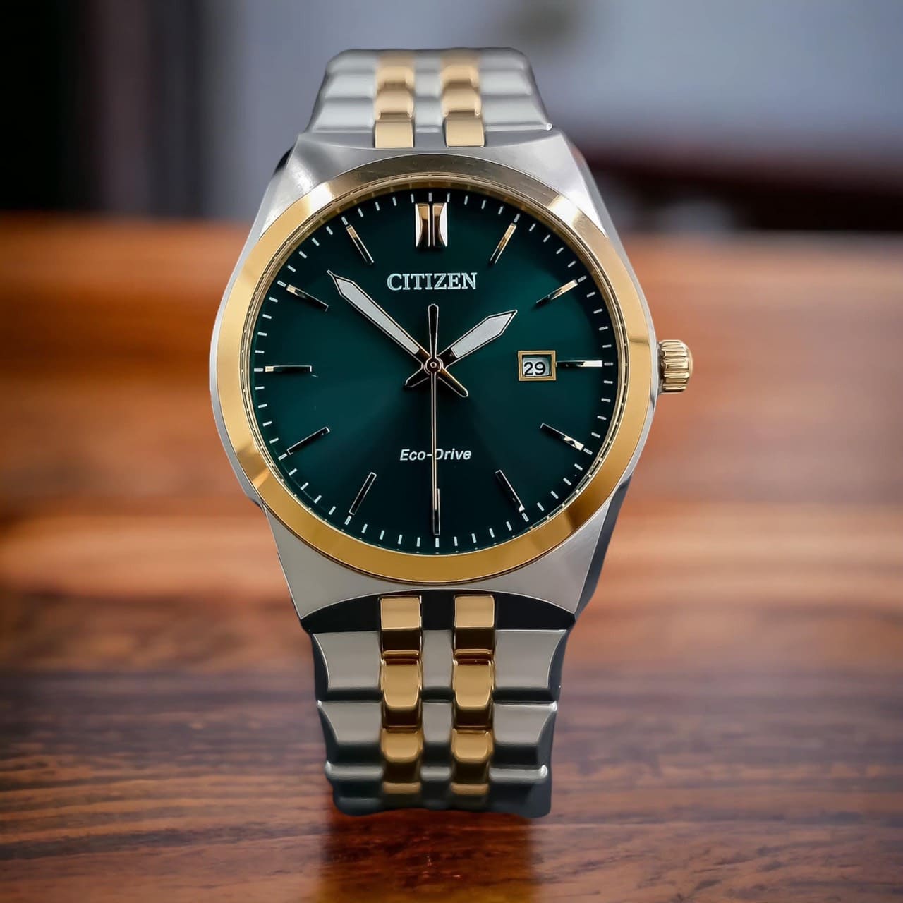 BM7339-89X Mẫu Citizen Corso cực đẹp với thiết kế khỏe khoắn cùng tone xanh lá đầy lịch lãm phối bộ dây thép demi chất lượng!