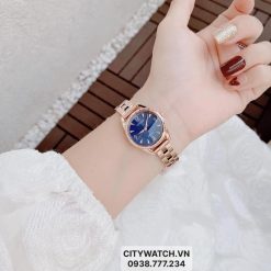 Thiết kế nhỏ nhắn, xinh xắn cùng mặt dial xanh dương đi kèm tông màu rose gold sang trọng tôn lên vẻ đẹp sang trọng cho phái đẹp!
