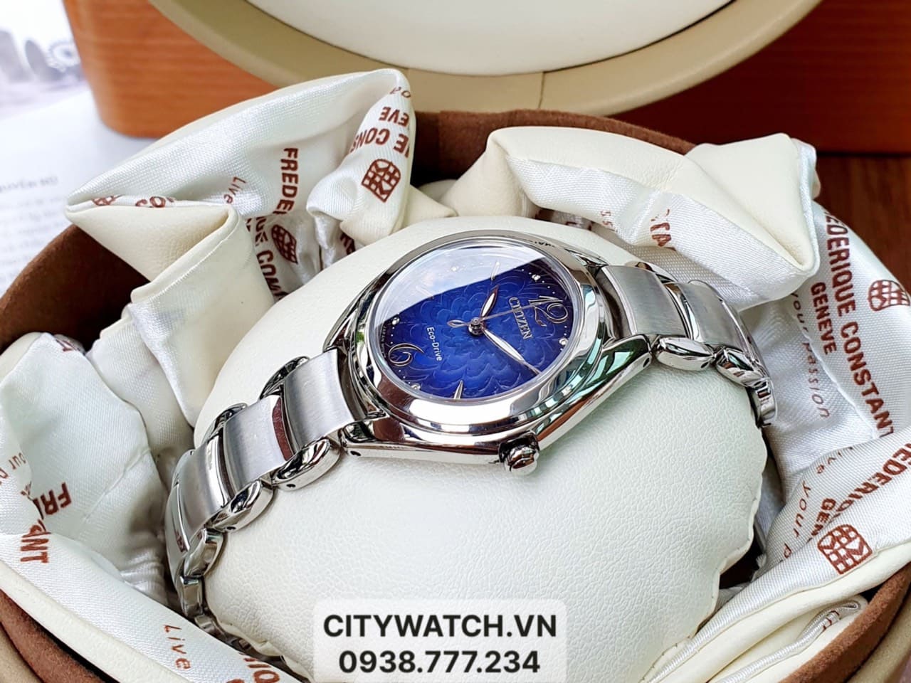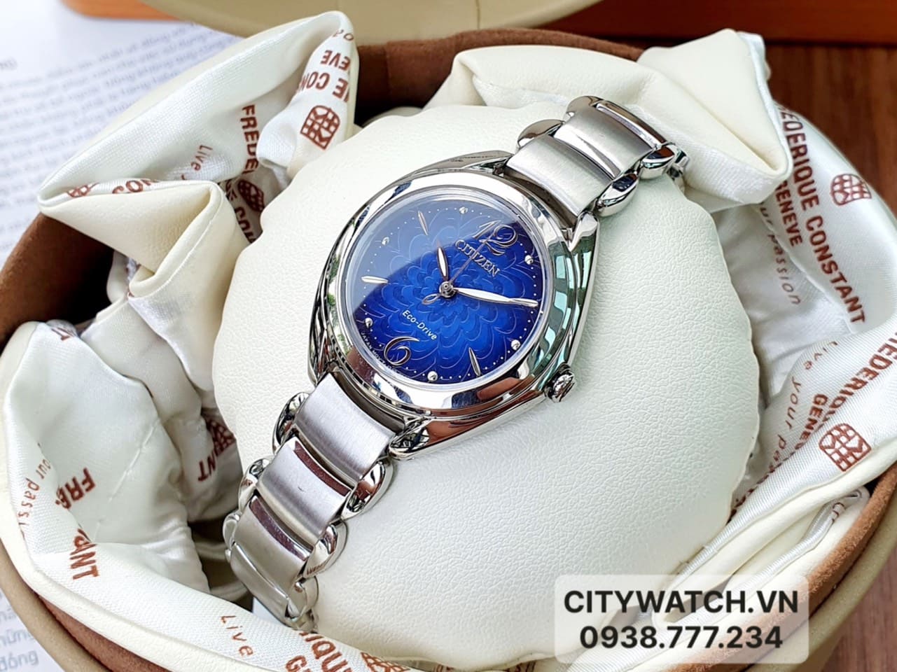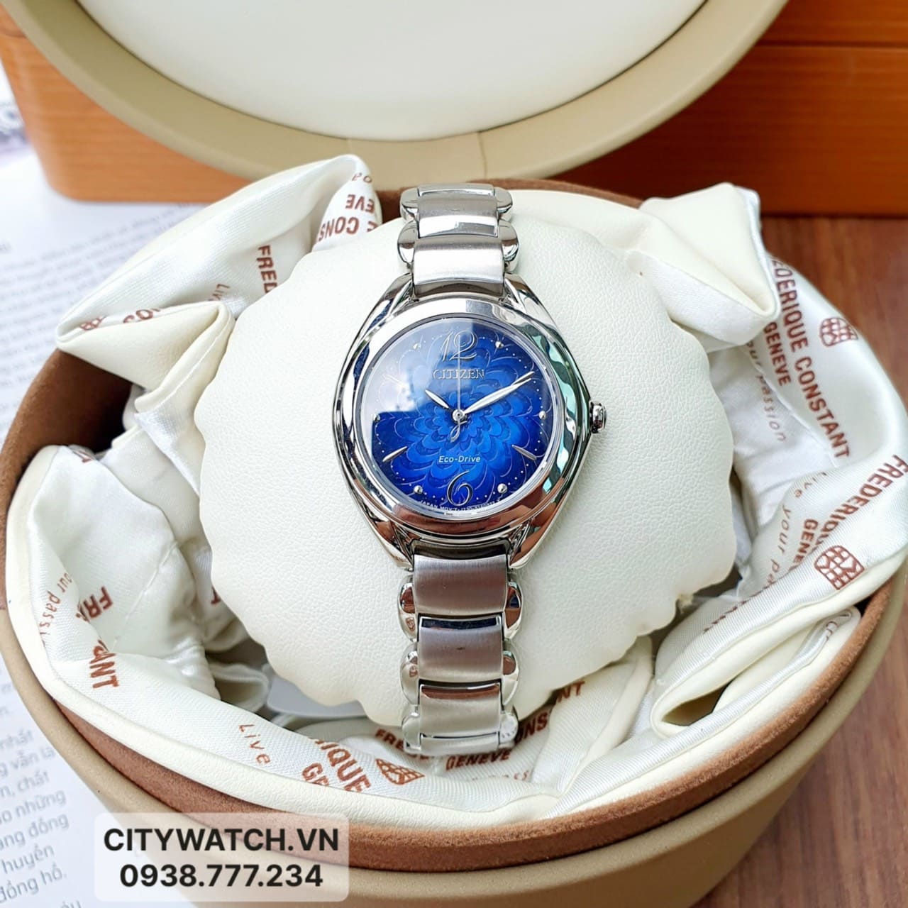 Lấy cảm hứng từ những cánh hoa nở trên bầu trời xanh biếc, chiếc đồng hồ Citizen này là sự kết hợp giữa màu mặt xanh đang là xu hướng cùng với vân cánh hoa tạo vẻ đẹp trang nhã, cổ điển.