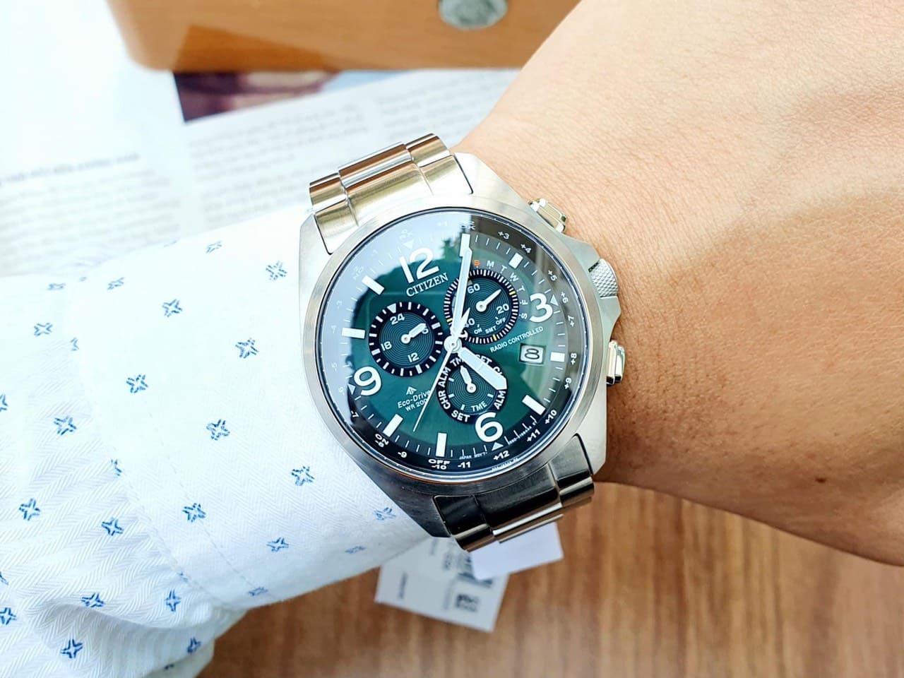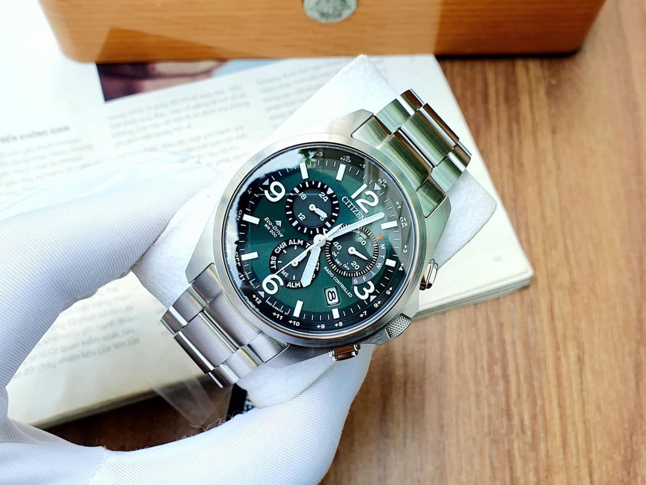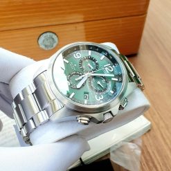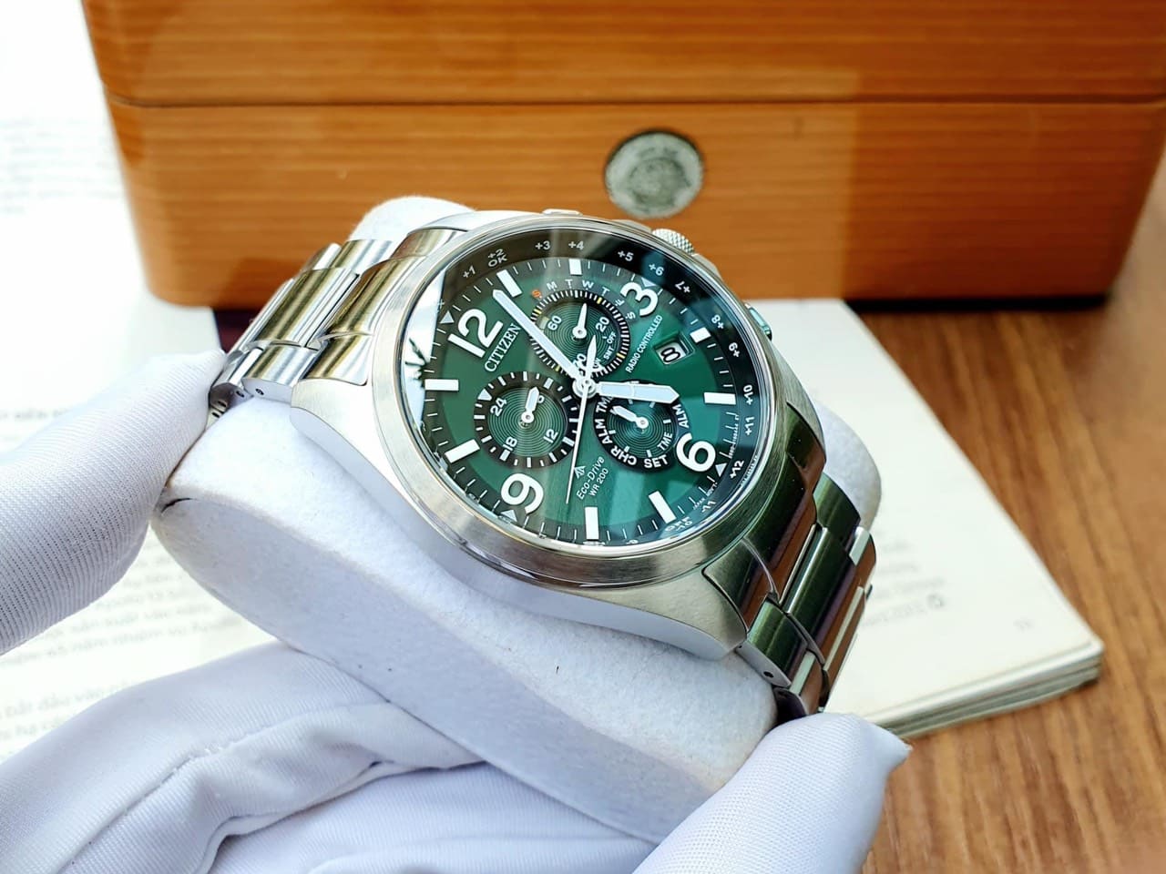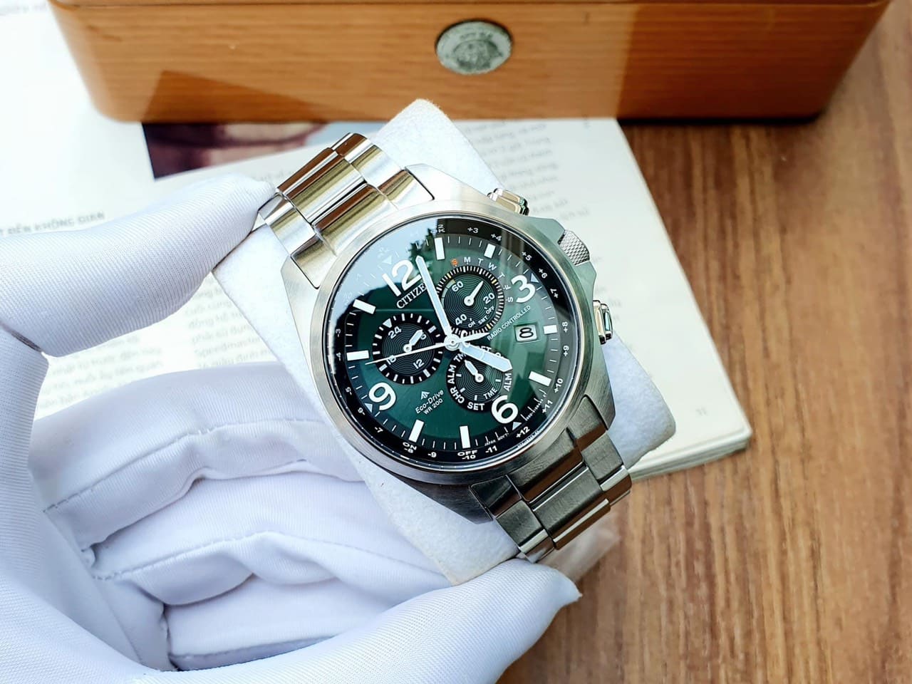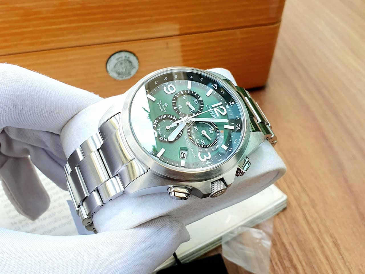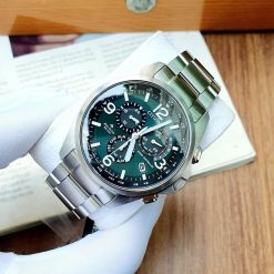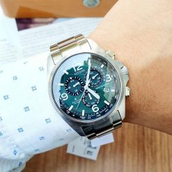 – Mặt số màu xanh green nam tính với các vòng sub mạnh mẽ