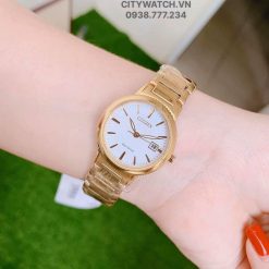 EW2372-51A Thiết kế mặt trắng đơn giản dây màu gold cực kì hút mắt với bộ kim và cọc số sang trọng!
