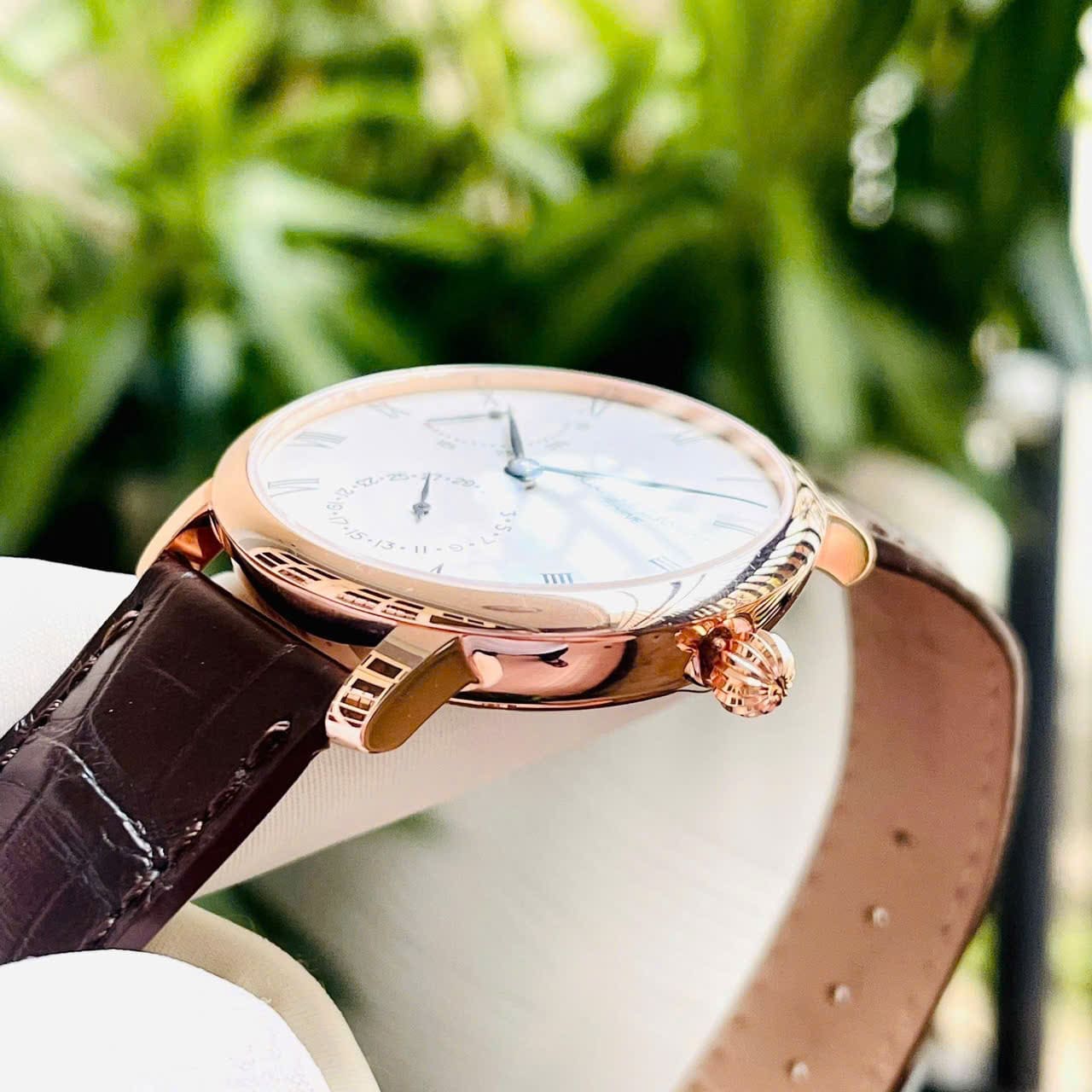 – Chức năng: kim báo cót Power Reserve, Lịch ngày