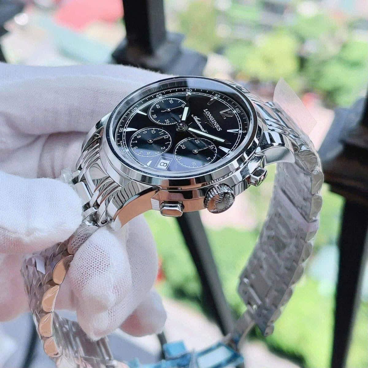 L2.752.4.52.6 Thiết kế dial đen huyền bí với 3 chức năng của đồng hồ nằm trong 3 vòng tròn nhỏ riêng lẻ khác nhau cực tiện lợi. Kim và cọc số có dạ quang (Luminous) cực sáng có thể phát sáng trong bóng tối!
