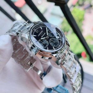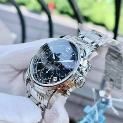 – Mặt dial đen, hiển thị chức năng chronograph thể thao mạnh mẽ