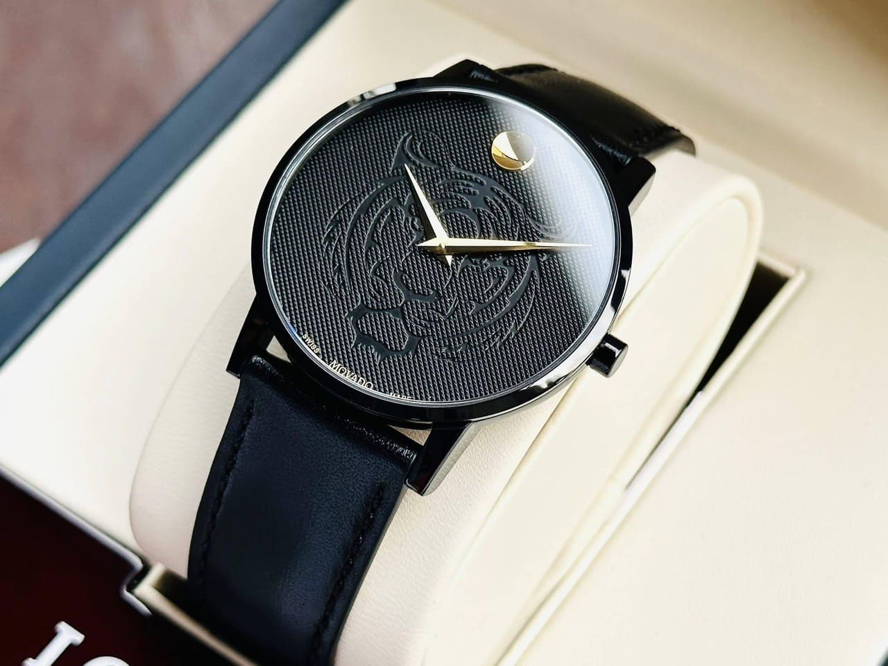 Phiên bản giới hạn cực chất. Movado mặt đen đính logo góc 12h huyền thoại cùng mặt Tiger cực ngầu!
