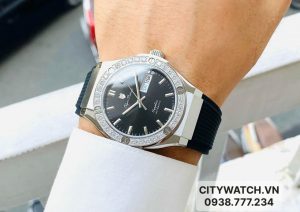 Tiểu HUBLOT cực chất. Tông màu black mix vỏ silver, benzel đính đá cực chắc chắn và sáng giúp tổng thể thiết kế trở lên Sang trọng – Đẳng cấp.