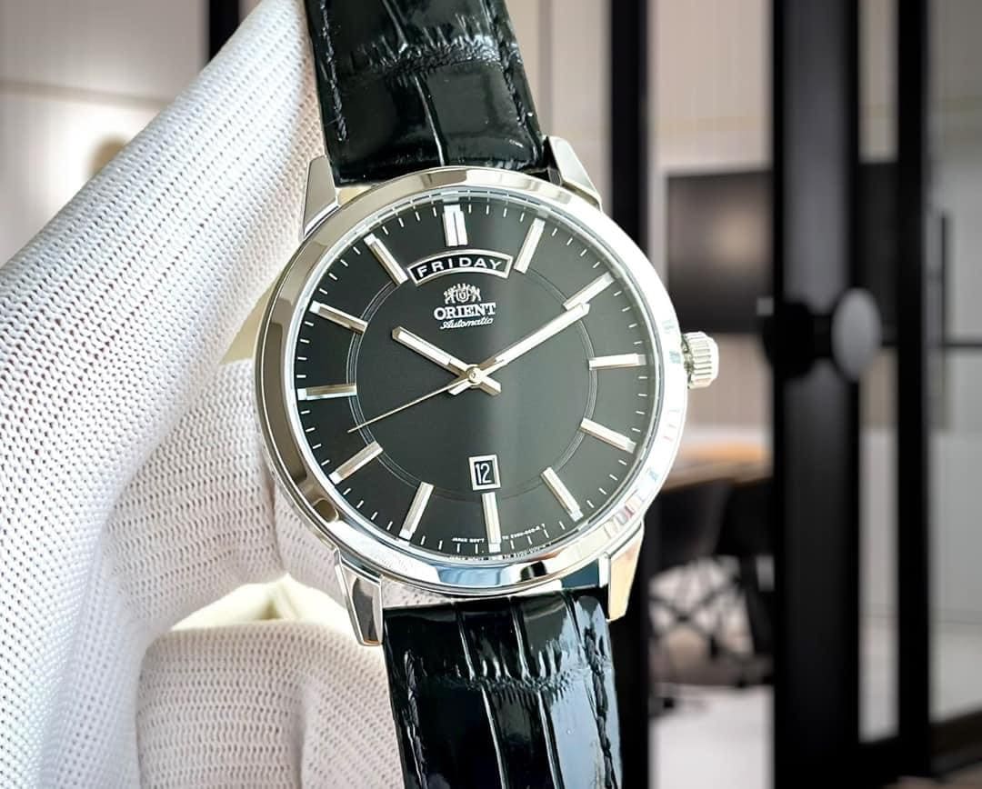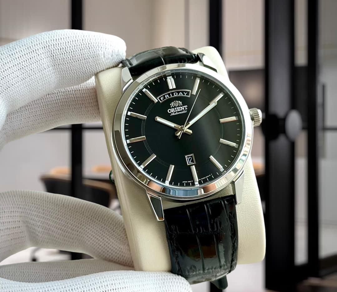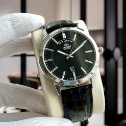 – Mặt số màu đen nổi bật trên đó là bộ kim cọc số thẳng to bản khoẻ khoắn, kèm đó là dạ quang.
