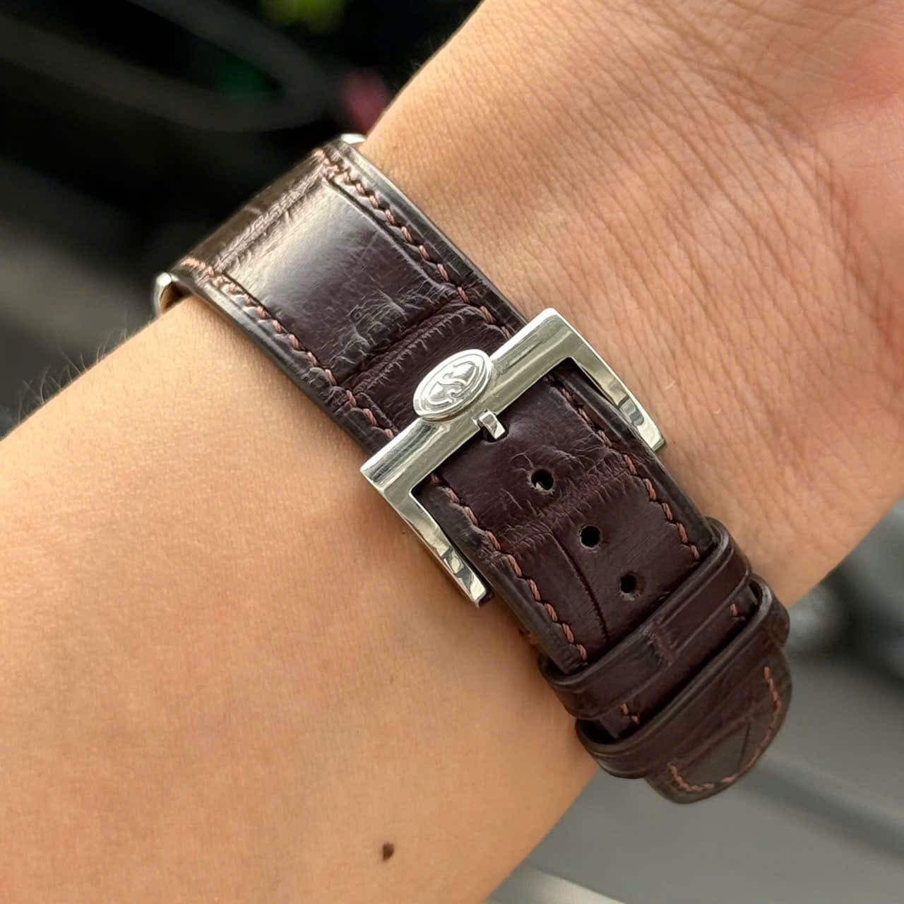 – Chất liệu dây: Dây da vân nâu chính hãng