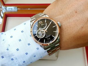 Orient Star Open Heart RK-AT0005Y hay còn được gọi là Semi Skeleton, mặt số đơn giản lịch sự nhưng cuốn hút bởi những nhịp đập đều đặn liên hồi của trái tim mở