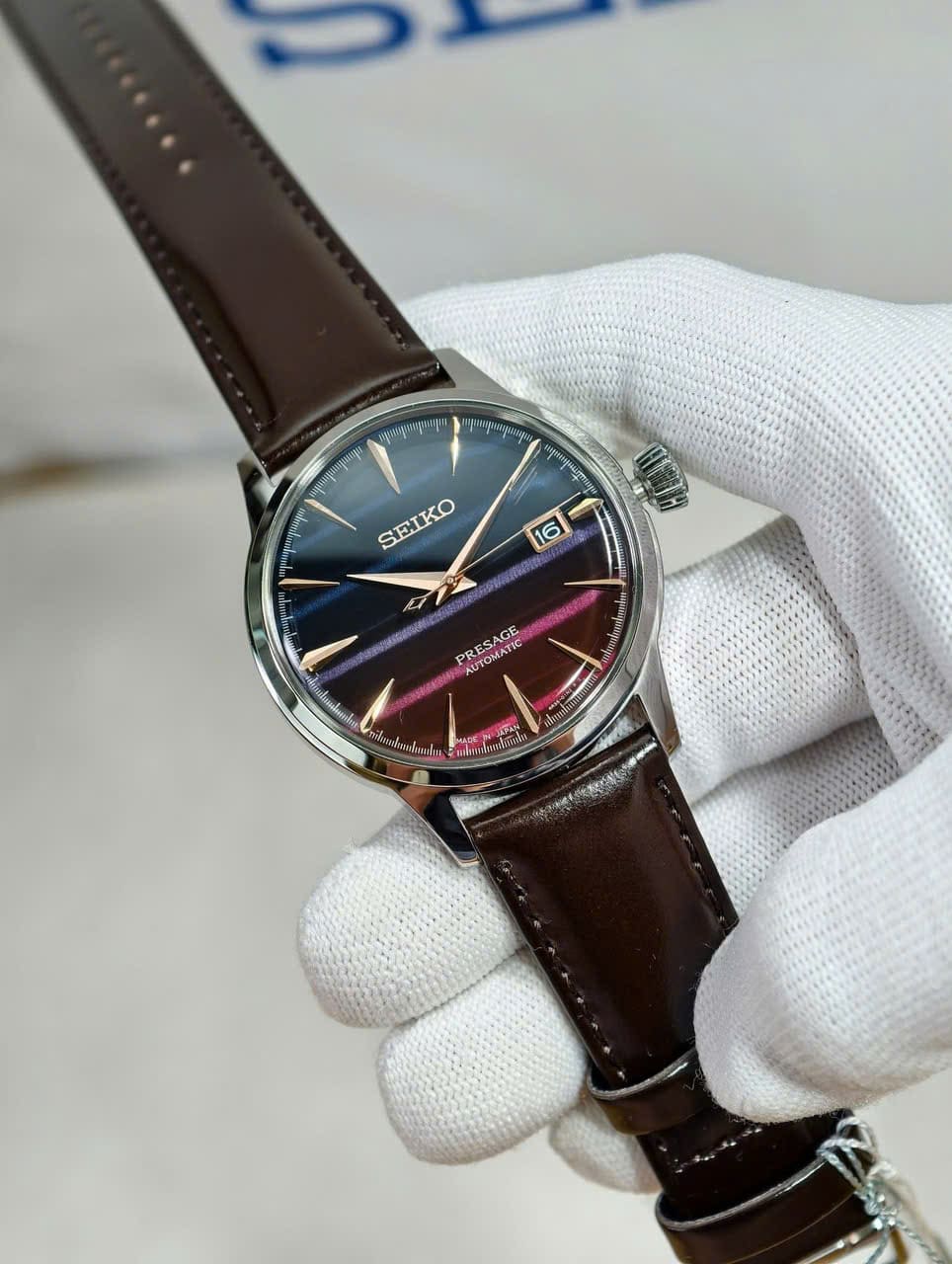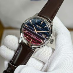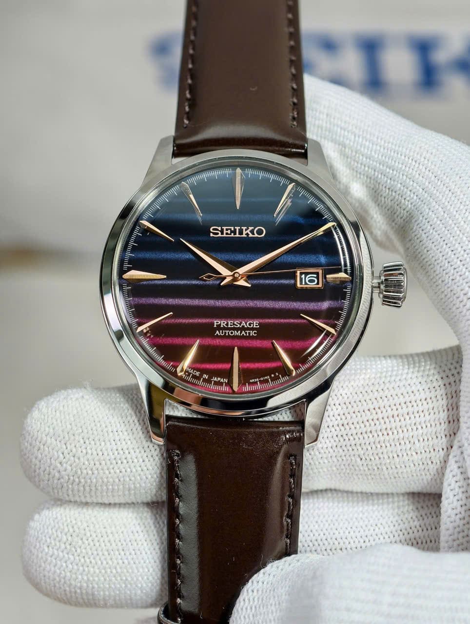 Lấy cảm hứng từ ly cocktail Star Bar Tokyo, mặt số chuyển sắc xanh tím cực kỳ độc đáo và cuốn hút.