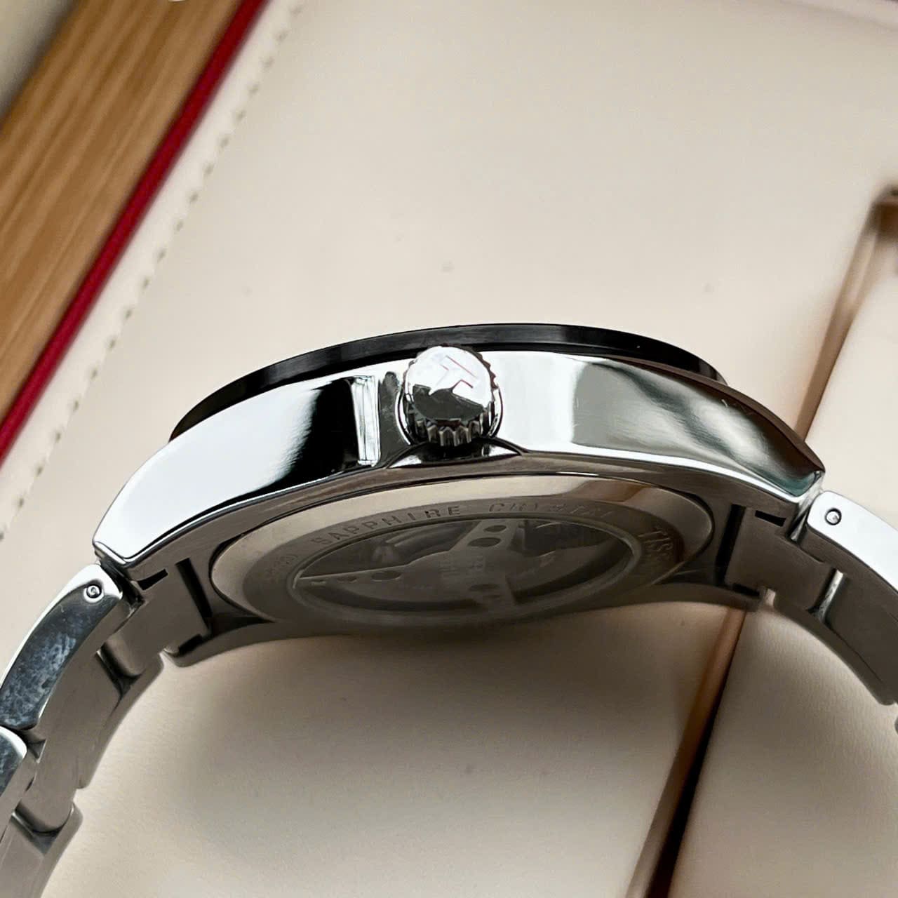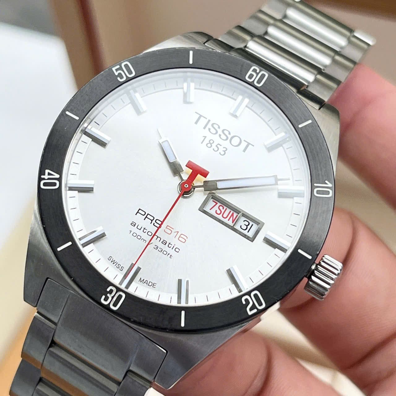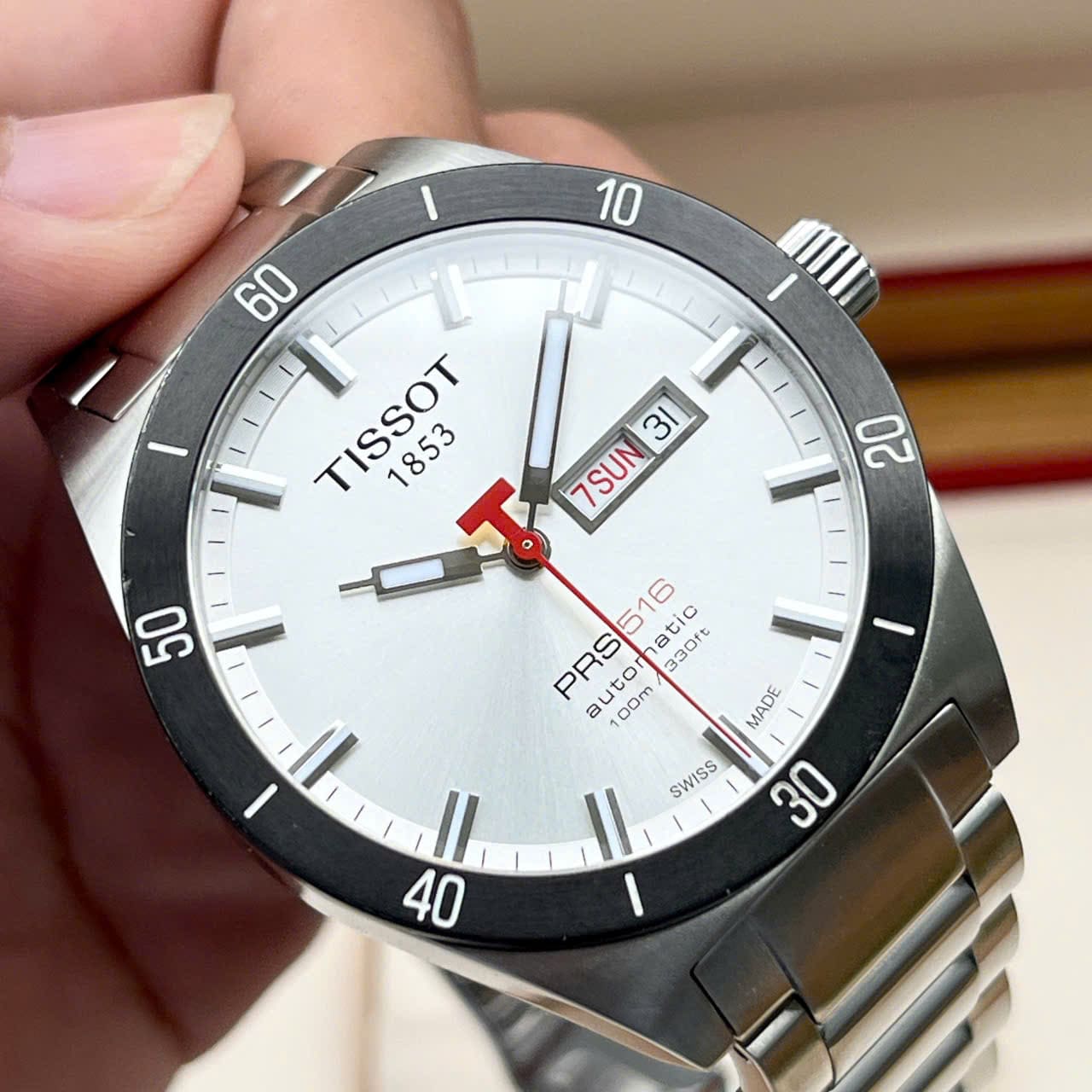 Phong cách nam tính với dial trắng và kim dây đỏ nổi bật cùng bộ máy Automatic mạnh mẽ!