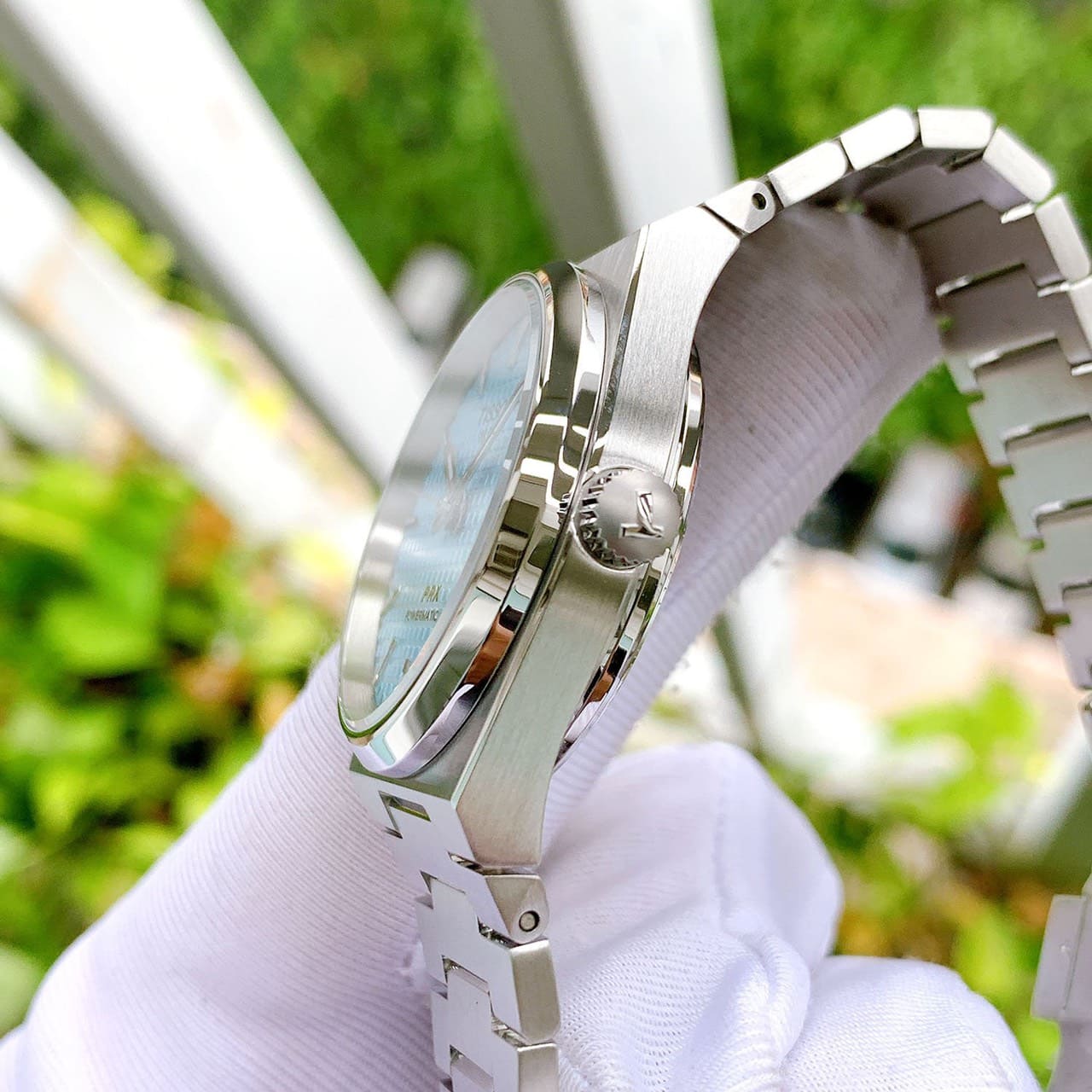 Dial xanh Tiffany làm vân nổi Guilloche thời trang kết hợp bộ kim cọc số tuyệt đẹp