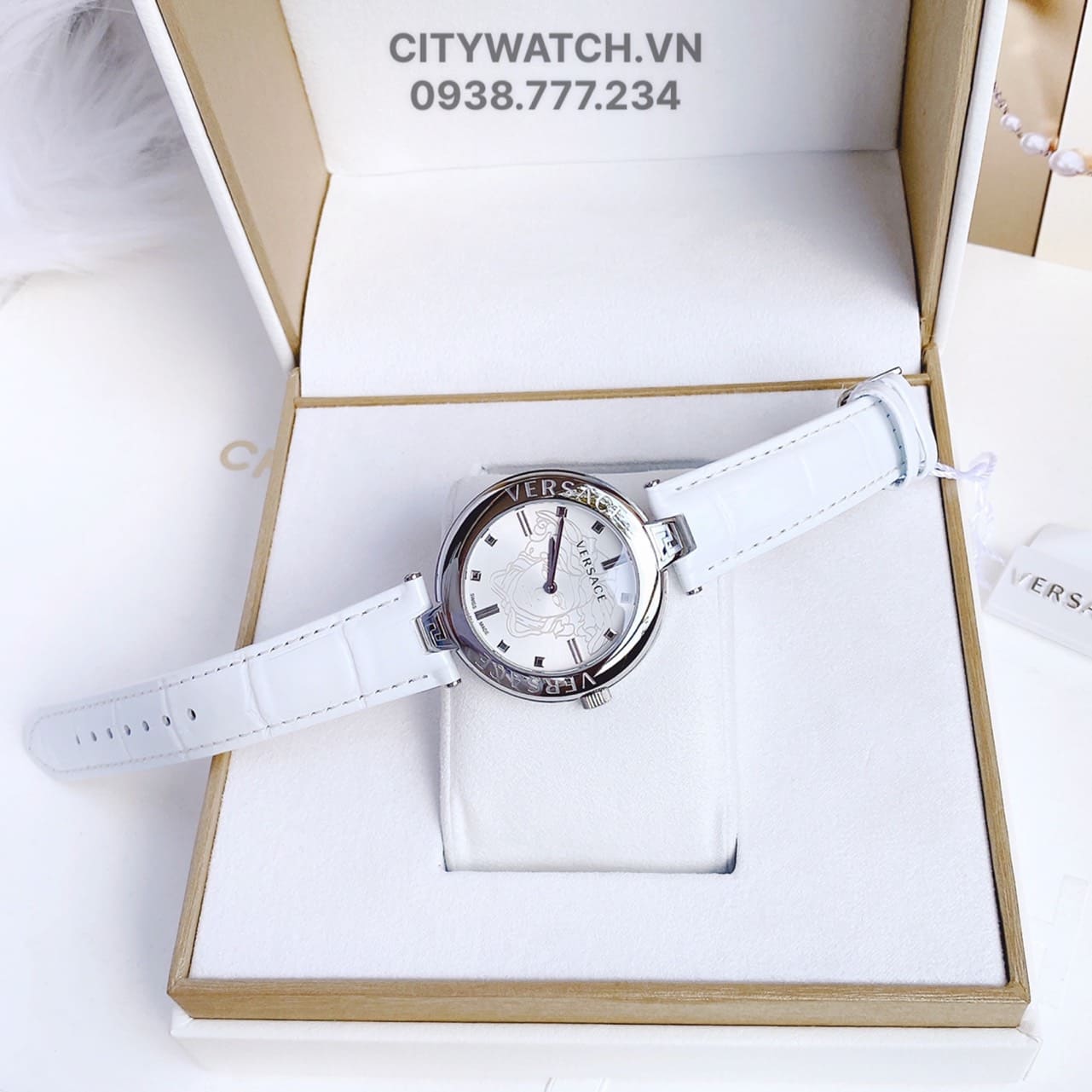 – Dial trắng với các vạch chỉ giờ và Medusa chìm xuất sắc